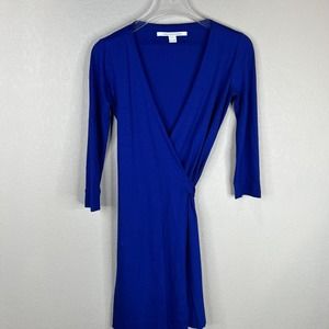 Diane Von Furstenberg New Julian Wrap Dress Size 0 Cobalt Blue 3/4 Sleeve Jersey