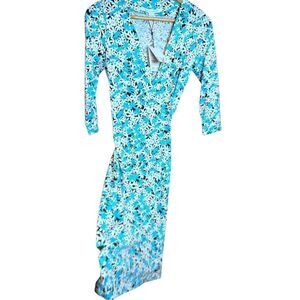 Diane Von Furstenberg New Julian Two Wrap Dress Garden Daisy Azure Blue Size 4