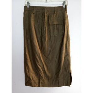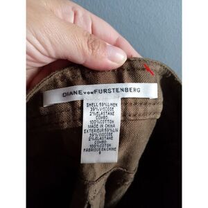 Diane Von Furstenberg Olive Green/Brown Linen Cotton Utility Style Pencil Skirt sz 6, great condition