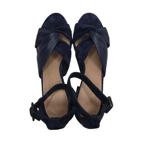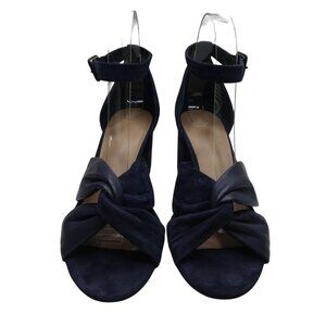 Diane Von Furstenberg Pasadena Blue Leather Open Toe Chunky Heel Sandals