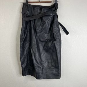 Diane Von Furstenberg Pencil Skirt Women Small Black Lamb Leather DVF Grace