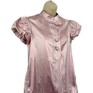 Diane Von Furstenberg woman's pink and white shiny metallic snake print dress. Dress is a short with short sleeves and button detailing down the front. It's made of an acetate polyester blend and is a woman's size 2. Dress does not have any give.