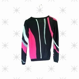 Stylish sweater with bold pink and black design. Features unique patterns for a chic look.