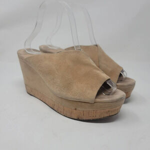 Diane Von Furstenberg Platform Wedge Slide Sandals Women's Size 9 M Tan Suede