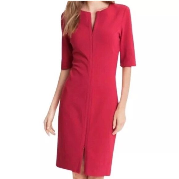 Diane Von Furstenberg Red Short Sleeve Saturn Full Front Zip Dress 8
