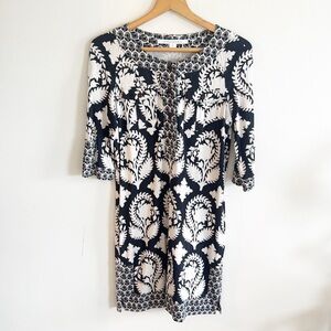 Diane Von Furstenberg SILK BLACK/WHITE INDIAN BROCADE FLORAL STAMP DRESS sz 8
