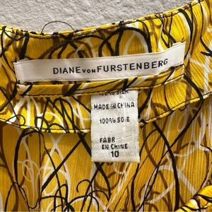 Diane Von Furstenberg Shirt Size 10 Silk Gold Puff Sleeve Blouse DVF Designer
