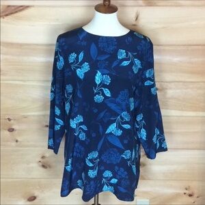 Beautiful blue tunic with shades of blue in a hydrangea/floral print