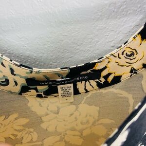 Diane Von Furstenberg Silk Black Cream Floral Bird Mini Shift Dress