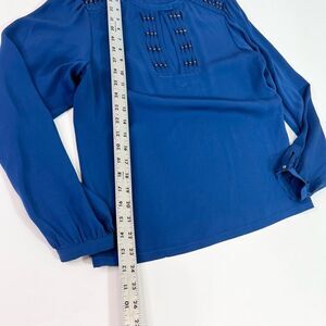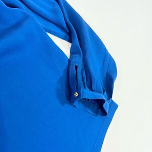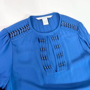 Diane Von Furstenberg Silk Blouse Women 2 Blue V-Neck Long Sleeve Keyhole Accent