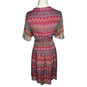 Diane Von Furstenberg Silk Blouson Midi Pink Multicolor DVF Dress Size 4