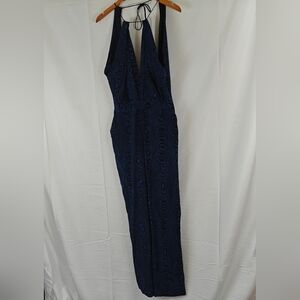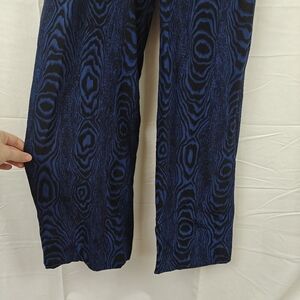Diane Von Furstenberg Silk Blue Black Silk Swirl Tie V-neck Jumpsuit Size 6