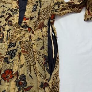 Diane Von Furstenberg Silk Brown Sheer Sleeves Knee Length Floral Dress Size 4