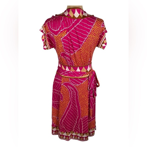 Diane Von Furstenberg Silk Colorful Abstract Print Wrap Dress pink orange 4 SM