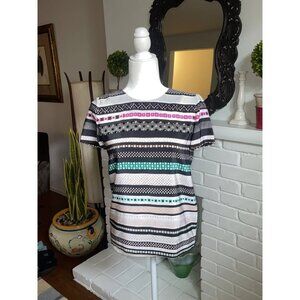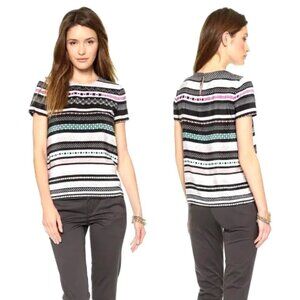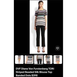 In excellent condition super cute silk top by DVF, multicolored mix prints stripes with embellishments in the front, very easy to combine for multiple outfits