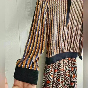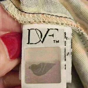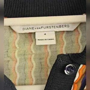 Diane Von Furstenberg Silk Knit Long Sleeve Navy Orange Cream Midi Dress Sz 4