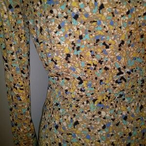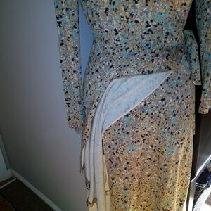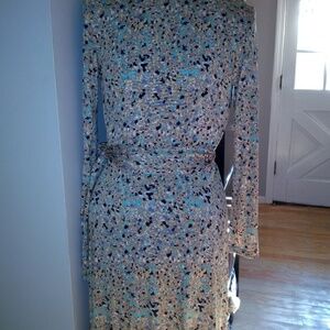 Iconic vintage wrap dress from Diane von Furstenburg. Splatter paint print on a tan background. Great vintage condition.