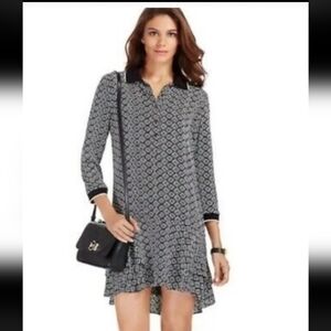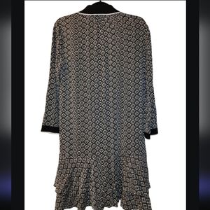 Chic mini dress with a stylish pattern. Features a classic collar and three-quarter sleeves. Perfect for versatile wear. 201