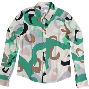 Diane Von Furstenberg- Silk Multicolored Printed Button Down Longsleeve Blouse