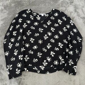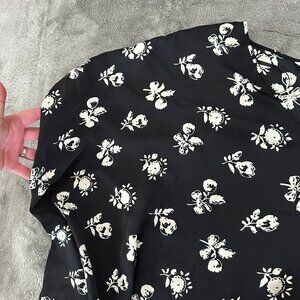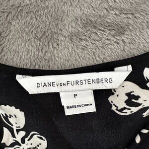 Diane Von Furstenberg Silk Poncho Oversized Tunic Top Blouse Black Flowers XS