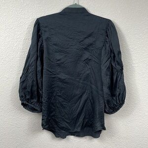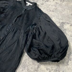Diane Von Furstenberg Silk Puff Balloon Sleeve Black Button Front Blouse Sz 10