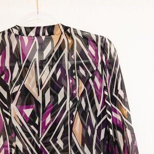 Diane Von Furstenberg Silk Ruffle Geometric Abstract Blouse Womens Size 2