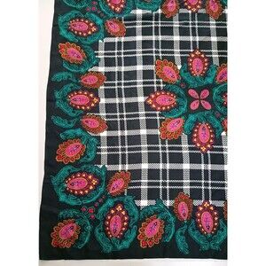 Elevate your style with this stunning Diane von Furstenberg scarf. The luxurious 100% silk satin is accented with a beautiful bright medallion paisley pattern with plaid in a classic and designer theme, signed Diane Von Furstenberg in the corner. Measuring 42 inches in both length and width, this square scarf is perfect for any occasion and is signed by the designer herself. The rolled edge adds a touch of sophistication to this already chic accessory. Add a pop of color to any outfit with this multicolor scarf that is sure to turn heads. Excellent pre owned condition, no odors, stains or rips. the original tag has been snipped off.