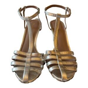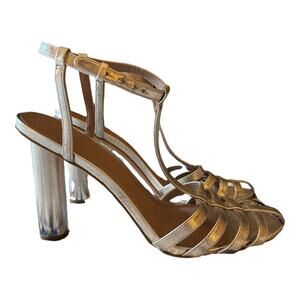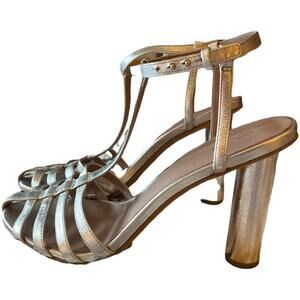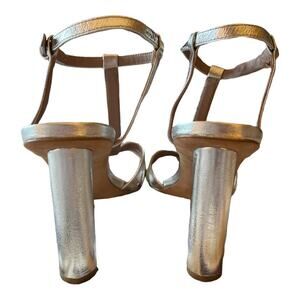 Diane Von Furstenberg Silver Leather Strappy Heel Sandals Women's Size 39 NWOB