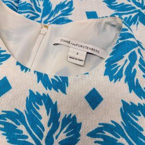 Diane Von Furstenberg Size 2 Blue / White Floral Sleeveless Midi Fit Flare Dress