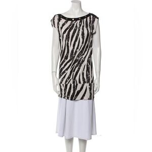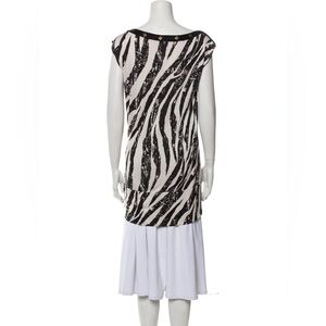 Diane Von Furstenberg Size 2 Silk Zebra Print Boat Neck Bronze Detail Tunic Top