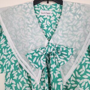 This listing is for Diane Von Furstenberg Size 8 Green White Short Flared Sleeve Tie Front Dress