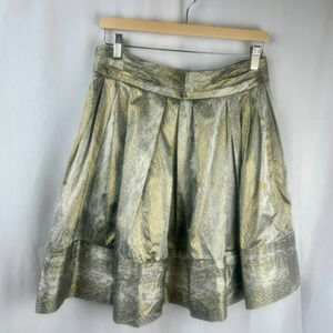 Diane Von Furstenberg Skirt Women 4 Gold Metallic A Line Pleat Snake Reptile