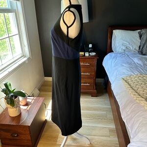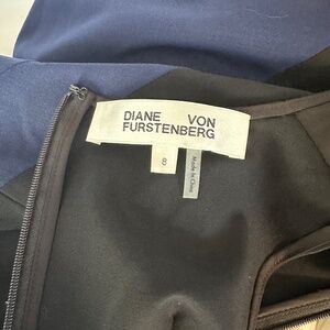 Beautiful Diane Font Furstenberg sleeveless midi dress has a back zip. Black with Navy. No stains or flaws. From a pet free smoke free home.