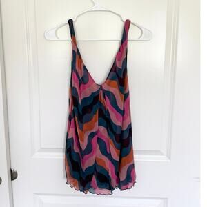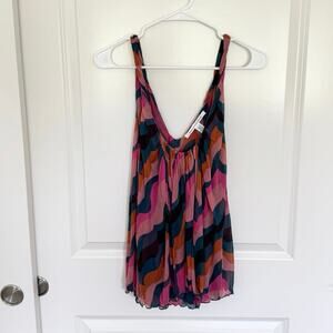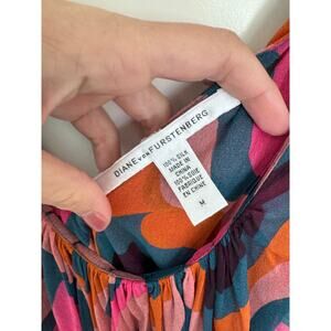 Diane Von Furstenberg Sleeveless Silk Lettuce Hem Blouse Medium