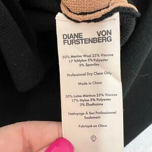 Diane Von Furstenberg Small Merino Wool Blend Sweater Dress Tan Black Colorblock