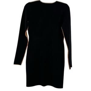 Diane Von Furstenberg Womens Size Small Merino Wool Blend Sweater Dress Tan Black Cream Colorblock Long Sleeve Stretch Mini Body Skimming Silhouette