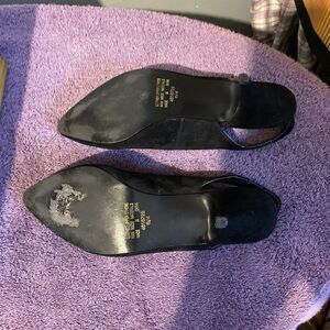 Diane Von Furstenberg Suede Kitten Sling Back 6 1/2 Black On Black