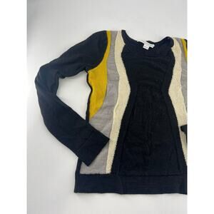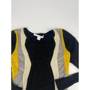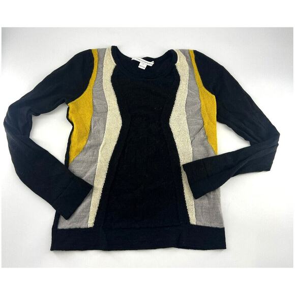 Diane Von Furstenberg Sweater Womens Large Black Gray Cream 100% Wool Pullover