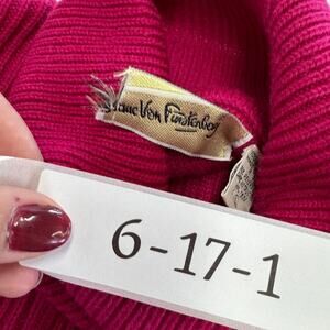 Diane Von Furstenberg Sweater Womens Large Pink Turtleneck Ribbed Knit Vintage
