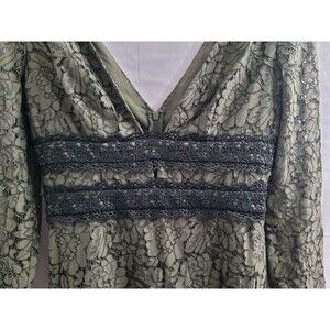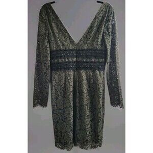 The Diane Von Furstenberg Size 6 Olive/Black Viera Lace Cocktail Dress is a sophisticated and elegant choice for various occasions such as weddings, parties, or formal events. Featuring a floral pattern with a V-neckline and long sleeves, this dress is crafted from a combination of polyester, spandex, polyamide, viscose, and cotton. The lace fabric adds a touch of luxury, while the zipper closure ensures a comfortable fit. Perfect for the spring and summer seasons, this knee-length dress is a stylish option for those looking for a chic and fashionable ensemble.