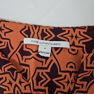Diane Von Furstenberg Tabalah Silk V Neck Dress In Orange And Maroon Size 4