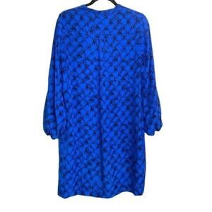 Diane Von Furstenberg Tanyana Clean Blue Black Silk Dress Belted Long Sleeve 8