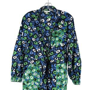 Diane Von Furstenberg x Target Jumpsuit Nylon Size XXS Retro Funky Animal Print Blue & Green Long Sleeve Zip Front With Drawstring Waist Fun Artsy Dopamine Dressing