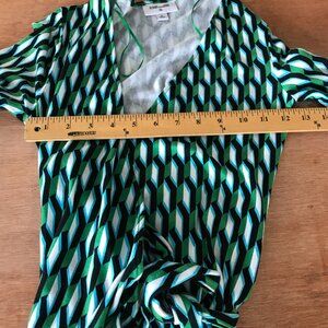 Diane Von Furstenberg Target Wrap Dress Women XS Green Geometric Tie Waist 18081