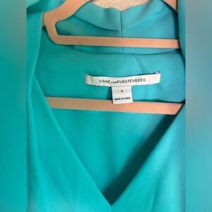 Diane Von Furstenberg Teal Aqua Blue Draped V-Neck Sleeveless Blouse S
