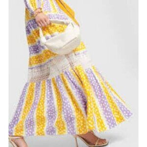 EUC; Diane Von Furstenberg Tessa Guipure Lace-Trimmed Printed Jacquard Maxi Dress