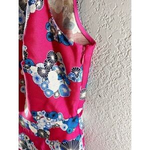 Our 60s-inspired floating flowers print brings a dreamy quality to this A-line dress. Featuring wide set straps, front darts, a band at the waist, and long bottom ruffle. Falls to mid-thigh. Fits true to size. Luxe wool/silk matte satin floral dress. Scoopneck. Sleeveless.