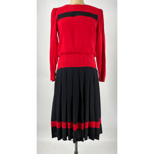 Diane Von Furstenberg Vintage Drop Waist Pleated Dress Red Black Size 8