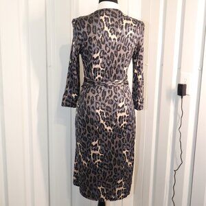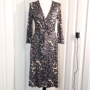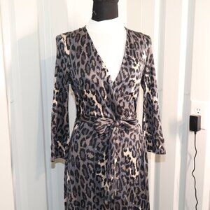 Diane Von Furstenberg Vintage Julian Wrap Dress Gray Leopard Size 8 Silk EUC