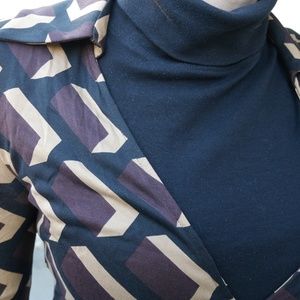 Worn, in great condition, DvF very-limited Vintage Re-Issue black, brown and beige geometric wrap-dress. Turtleneck not included.